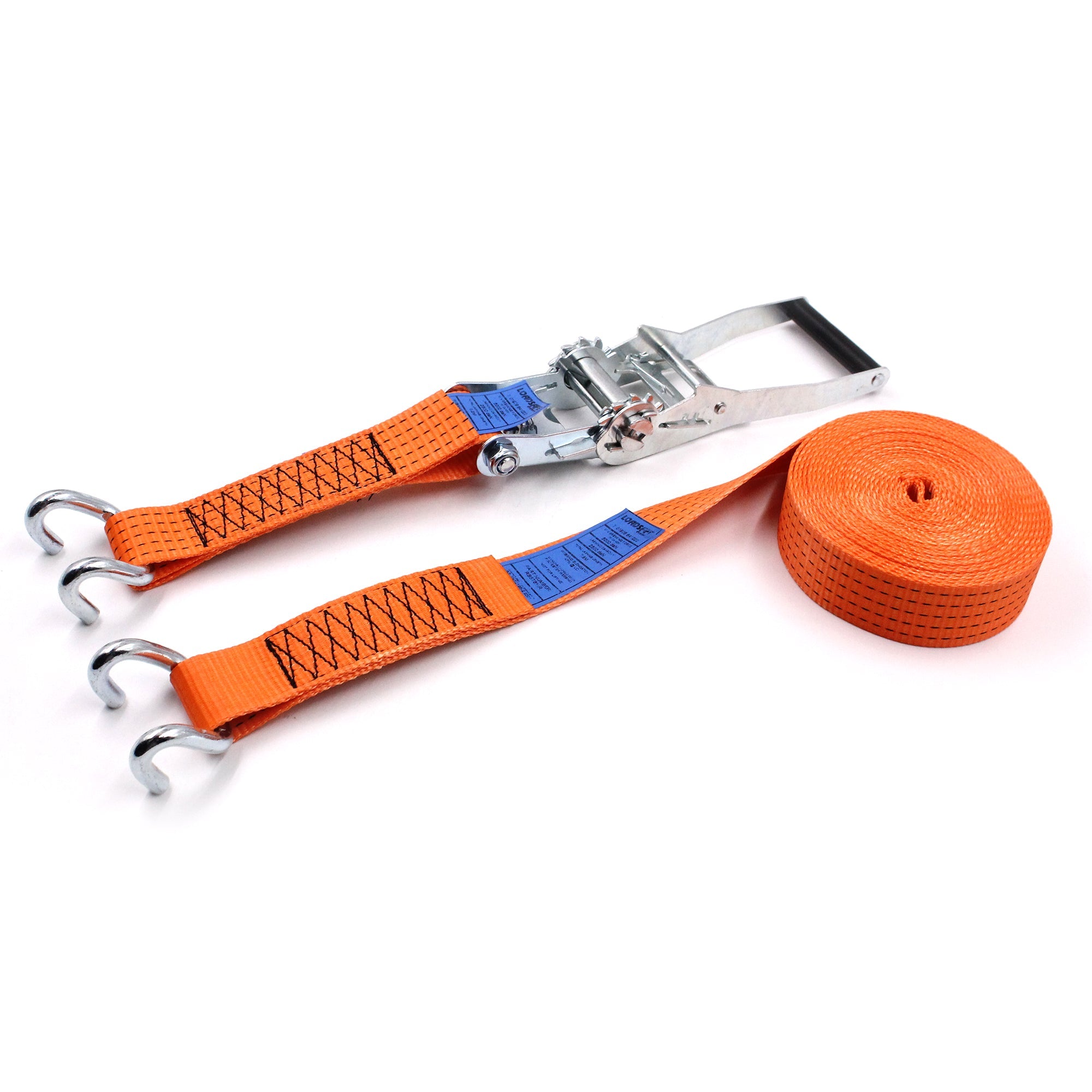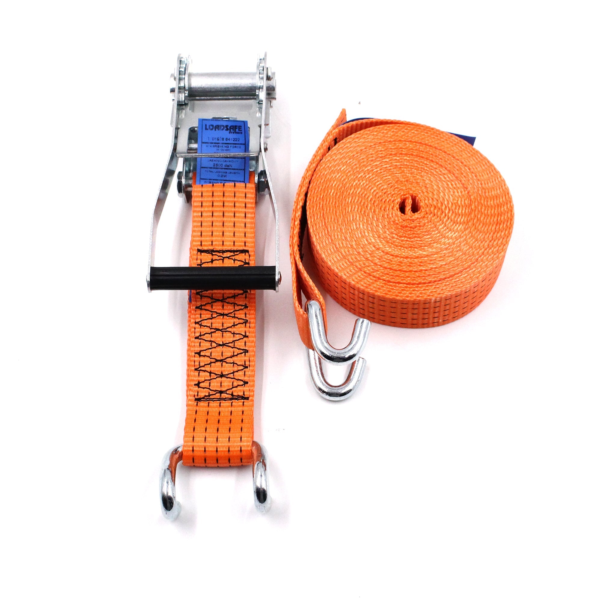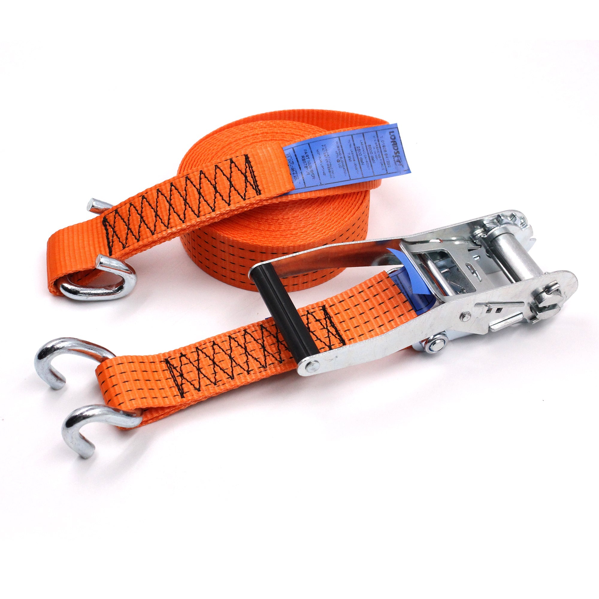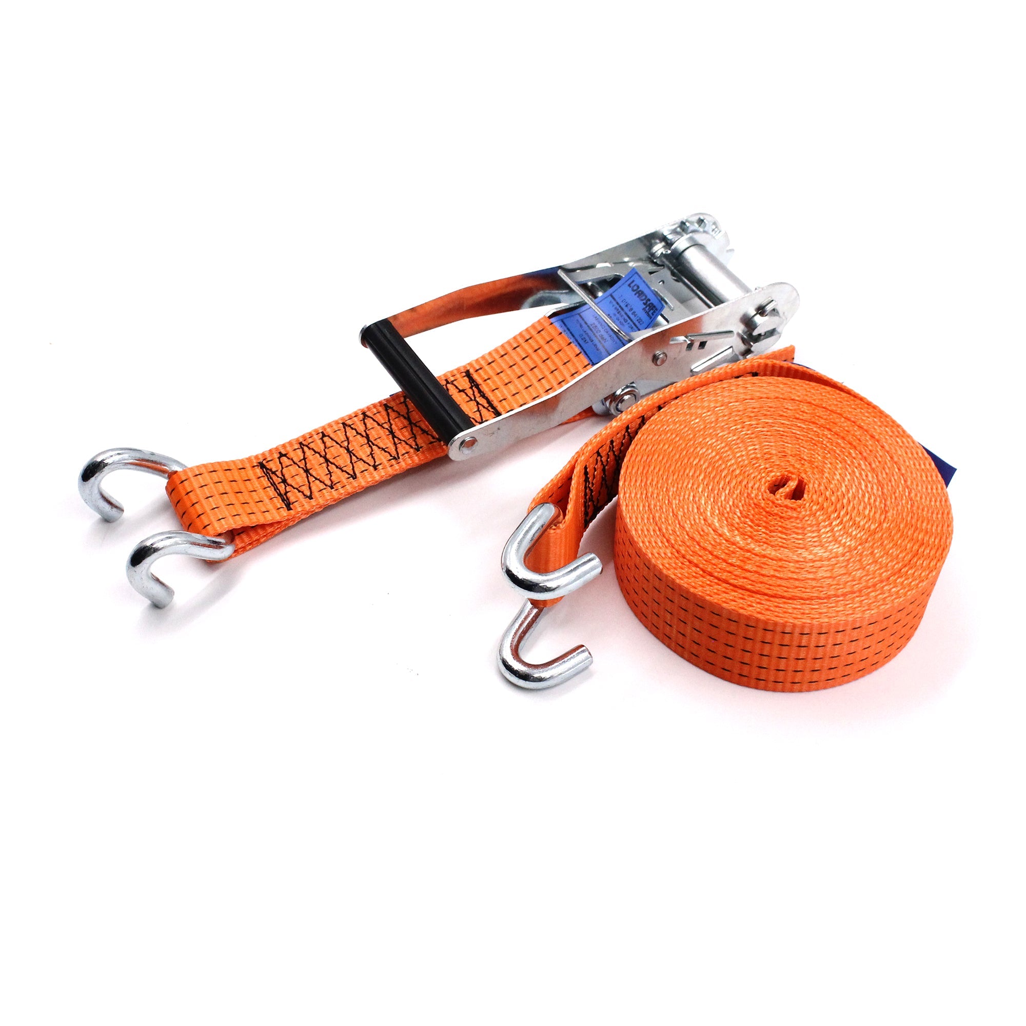 Benefits: This Ratchet Strap is a crucial tool for safely transporting large and heavy items. Its high strength and length make it suitable for a wide range of applications, ensuring that loads remain secure during transit. The open rave hooks offer easy yet firm attachment, making the loading and securing process efficient and reliable.